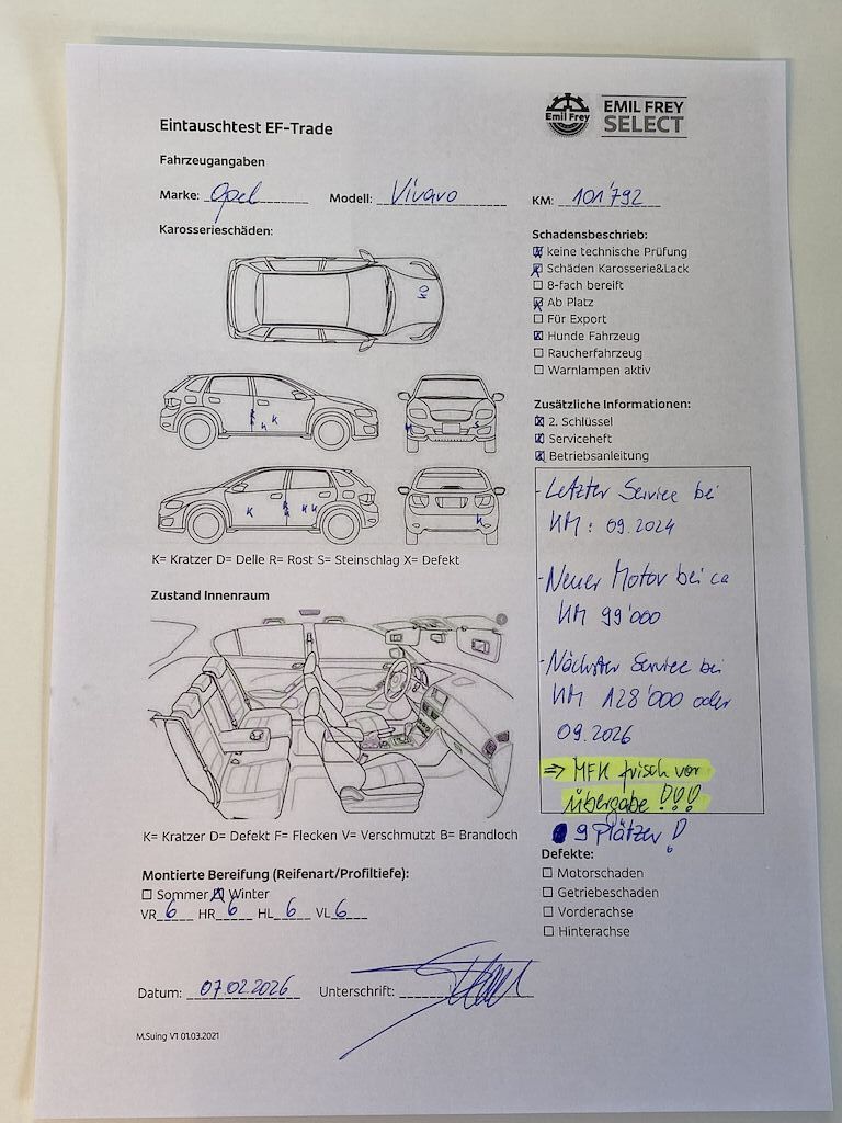 | Wird vor Fahrzeugübergabe frisch vorgeführt. AB MFK! 9 Plätzer. Alle Sitze vorhanden und mit dabei! Verfügbar ab Anfang April 2026. |