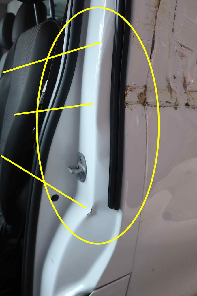 Türe vorne links mit Rückspiegel, Seitenwand links mitte mit Zierleiste und Innenseitenwand, Seitenwand links hinten,