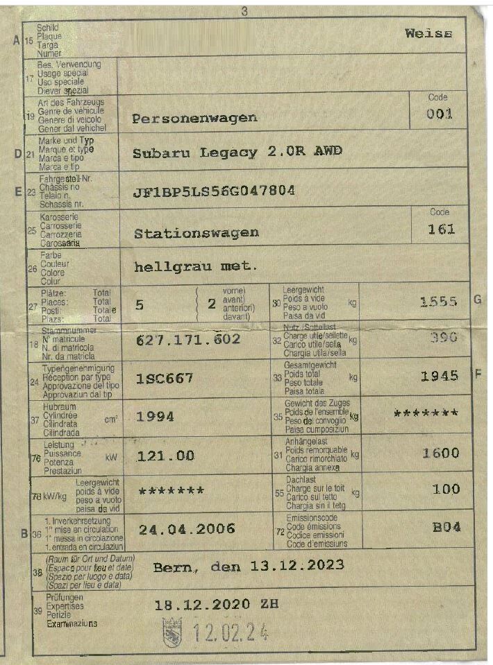 | Tipo | Legacy Station 2.0 R Classic – AWD |