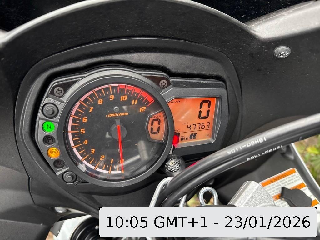 Auspuffkollektor, Auspufftopf, Aussenspiegel rechts, Front, Fussraster rechts, Griff rechts, Heckverkleidung, Lenker, Rad hinten, Rahmen, Rücklicht, Schutzblech hinten, Schwinge, Seite rechts, Tank, Verschalungen links, Verschalungen rechts, Verschalungen vorne, Windschutzscheibe