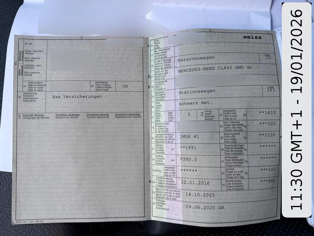 Exklusiv-Paket (Komfortschliessanlage mit Funk- Fernbedienung, Teppichfussmatten, Sitze: Vordersitze heizbar, Polster:Polsterung in Ledernachbildung ARTICO, Sitze: Lordosenverstellung (4-Wege) für Fahrer und Beifahrer, Dekor:Instrumententafel in Ledernachbildung ARTICO), Assist: Abstandsregel-Tempomat DISTRONIC PLUS, Feuerlöscher, AMG Leichtmetallräder im Vielspeichen- Design 19J, schwarz lackiert, Paket: Spur-Paket, Media: Digitaler Radioempfang (DAB/DAB+), Ambientebeleuchtung, Assist: Totwinkel-Assistent, Reifenreparatur-Set mit Kompressor, Klima: Klimatisierungsautomatik THERMOTRONIC, Entfall Typenbezeichnung auf Heckdeckel, Assist: Rückfahrkamera mit Hilfslinien, Harman/Kardon-Soundsystem LOGIC 7 mit DSP Verstärker und 10-14 Lautsprechern, Paket:AMG Night-Paket, Licht- und Sichtpaket, Assist:Spurhalteassistent, Intelligent Light System mit Bi-Xenon- Scheinwerfer, Scheinwerfer-Waschanlage, dyn. Kurven-, Autobahn- und Abbiegelicht, Dekor: AMG Zierelemente Carbon, Innen- und Aussenspiegel automatisch abblendbar, Aussenspiegel links und rechts elektrisch anklappbar, Media:Garmin MAP PILOT Navigationsmodul, Abgedunkelte Seiten- und Heckscheibe, Media: Media Interface Kabel Kit, KEYLESS GO Zugangs- und Fahrberechtigung, Bremssättel rot lackiert, Assist: Aktiver Parkassistent inkl. PARKTRONIC, EASY-PACK-Heckklappe mit elektrischer Betätigung zum Öffnen und Schliessen., Panorama-Schiebedach elektrisch mit Komfortschliessung und Sonnenrollo, Media:Audio 20 CD inkl. Vorrüstung für Garmin MAP PILOT