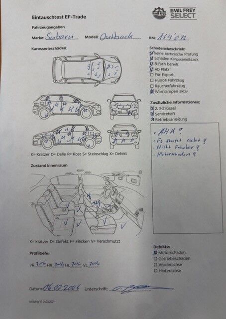 Keine technische Prüfung (Werkstatttest) vorgenommen