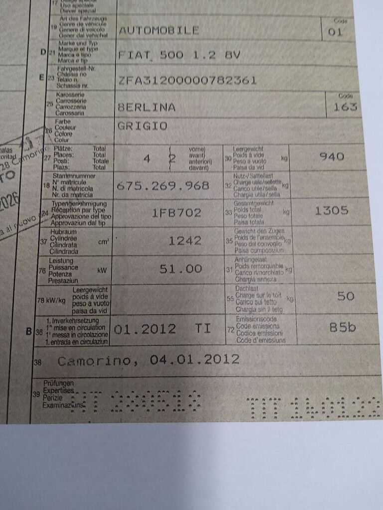 Prima immatr. 04.01.2012