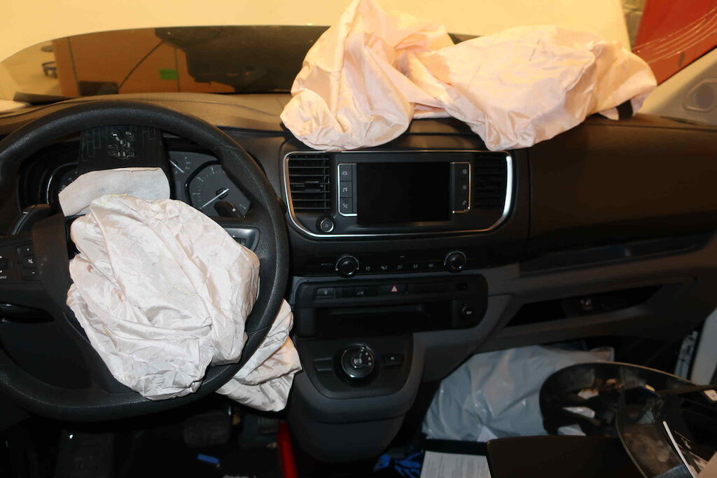 Fahrer- Beifahrerairbag sowie Gurtstraffer vo li und re ausgelöst, Frontscheibe zerschlagen