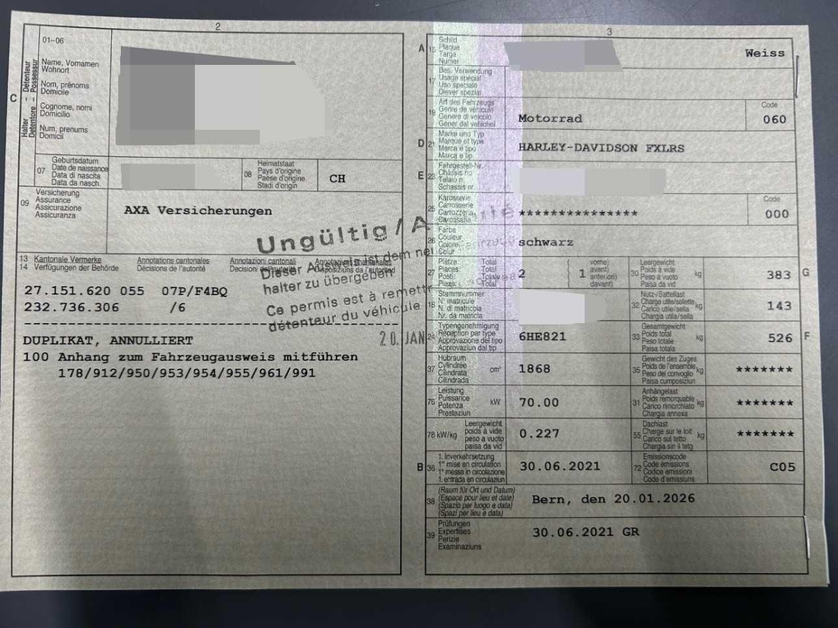 | Fahrzeugausweis | Vorhanden |