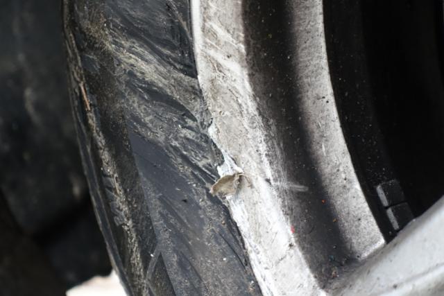 Radhaus vorne rechts eingedrückt / gestaucht.