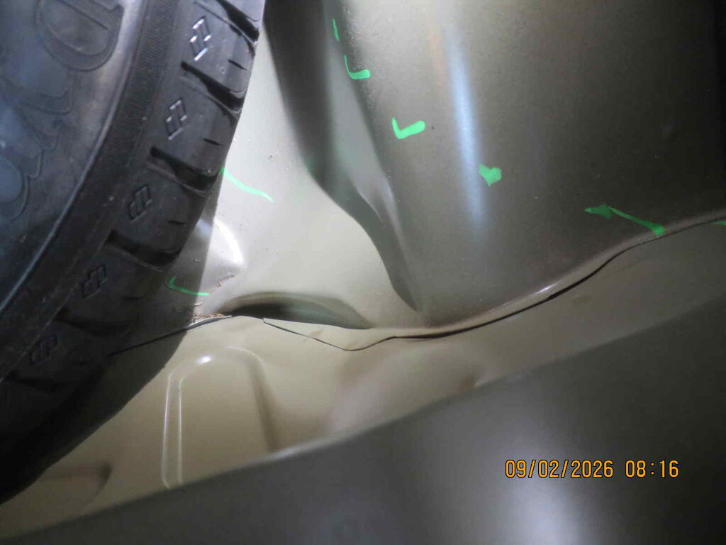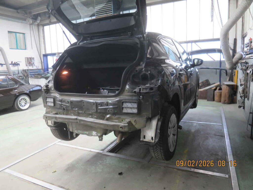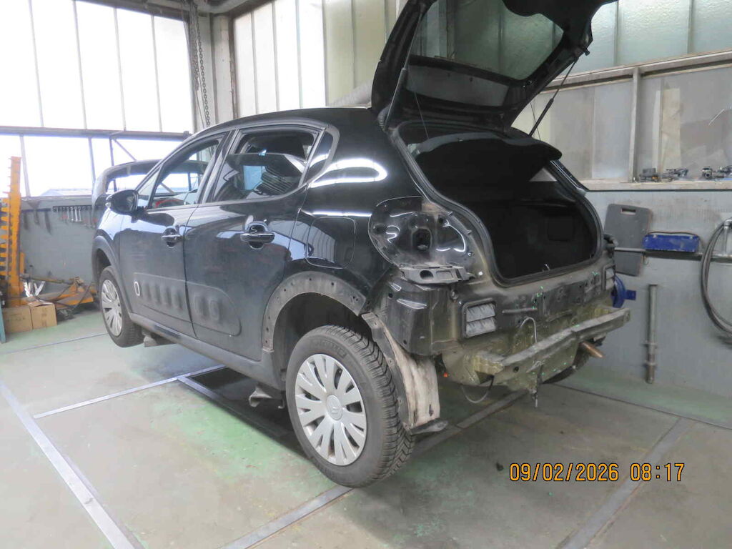 Sst hi gerissen, Sst. Träger geknickt, Heckblech und Kofferraumboden gestaucht, Heckklappe Lackschaden, beide Rückleuchten gebrochen