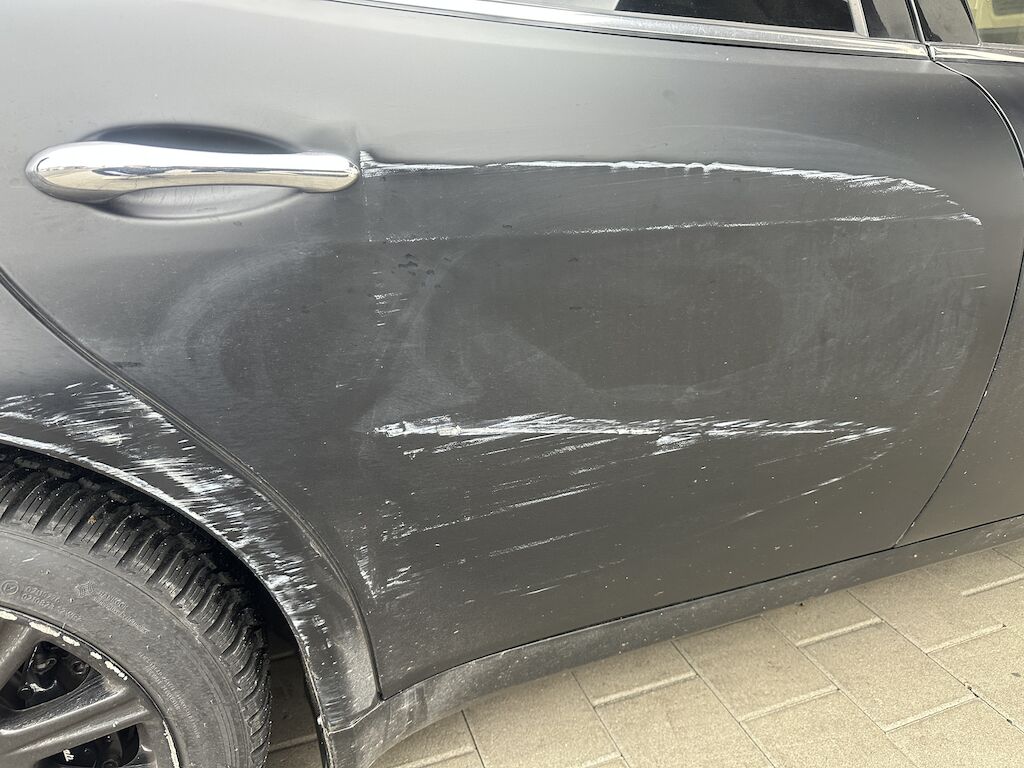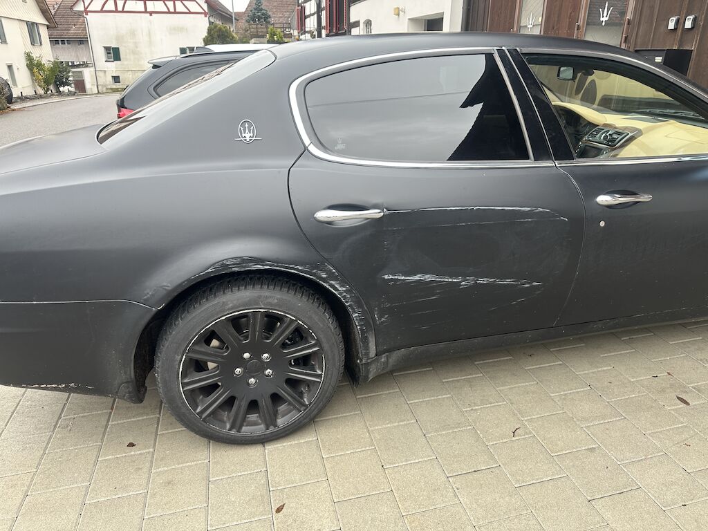 Anprall rechts. Dabei wurden die Türe hinten, die Seitenwand und diverse Bauteile im Anprallbereich beschädigt