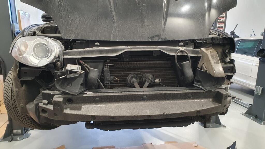 Pare-chocs avant renfort avec bouts de longerons, phares, aile avant gauche endommagé