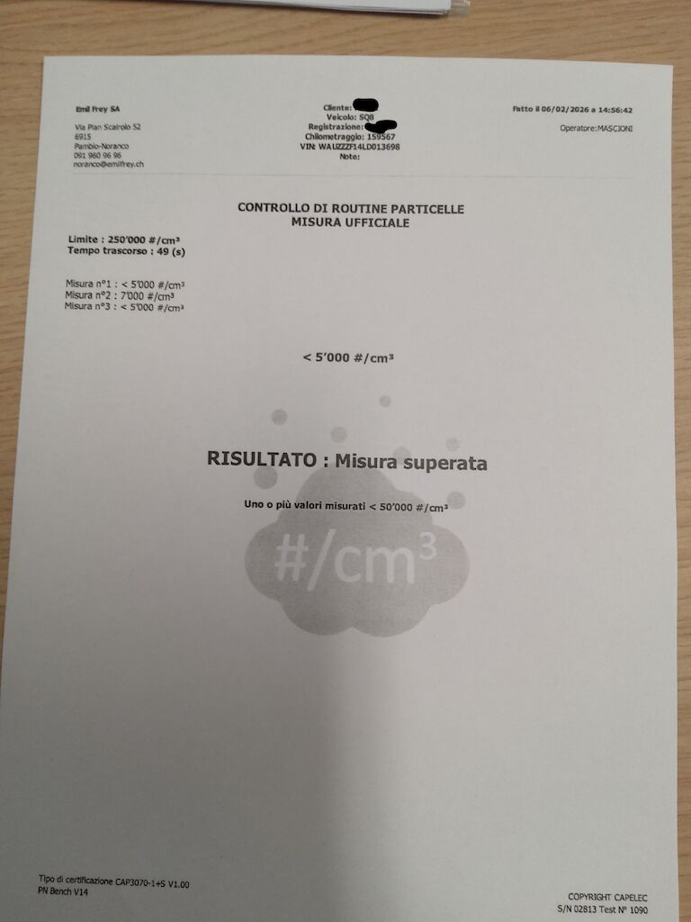 Non è stata effettuata alcuna ispezione tecnica (prova in officina)