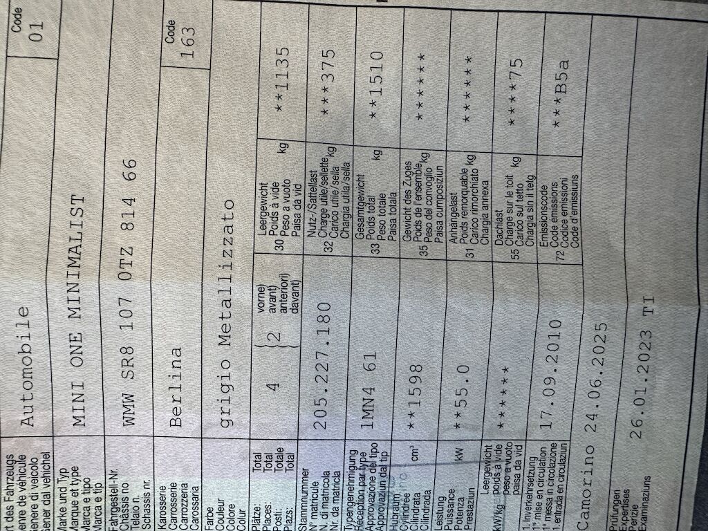 Numero telaio WMWSR81070TZ81466