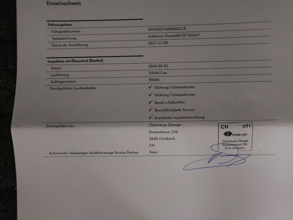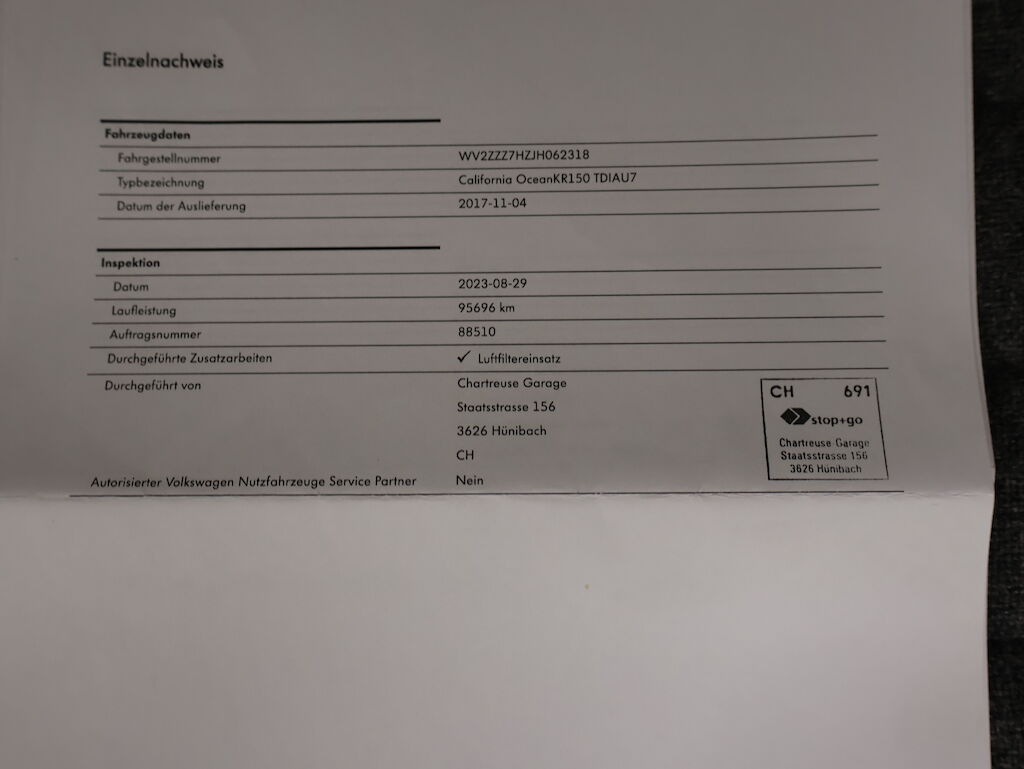 Keine technische Prüfung (Werkstatttest) vorgenommen