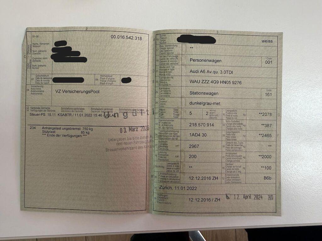 Keine technische Prüfung (Werkstatttest) vorgenommen