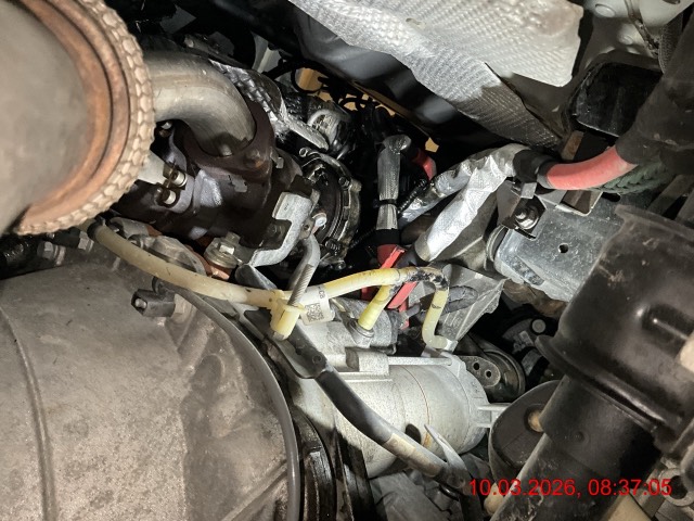 Schadensbeschreibung Beschreibung der Schäden: Motorölverlust bei rechtem Turbolader. Motorölverslust bei Ölfilterwärmetauscher. Motoröl am Steuerzahnriemen.