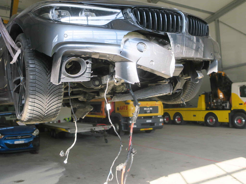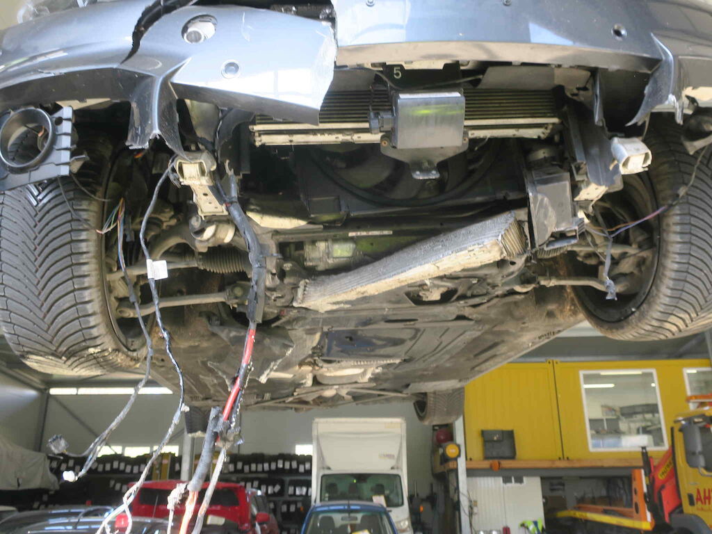 Front, Querträger, Spitzen Längsträger, Unterlboden, Kühlerpaket, Kabelstrang, Oelverlust, alle Räder ect. wurden beschädigt.