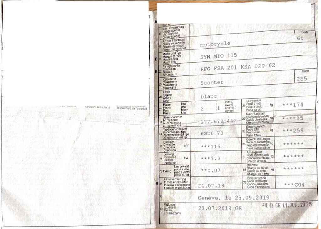 | Tipo veicolo / Costruzione / Porte | Motoveicolo / Scooter / 0 |
