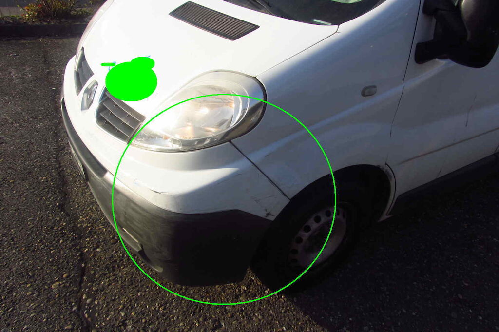 Stossfänger vorne, Motorhaube, Scheinwerfer VL, Kotflügel u. Türe VL