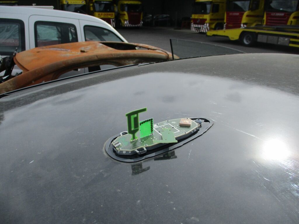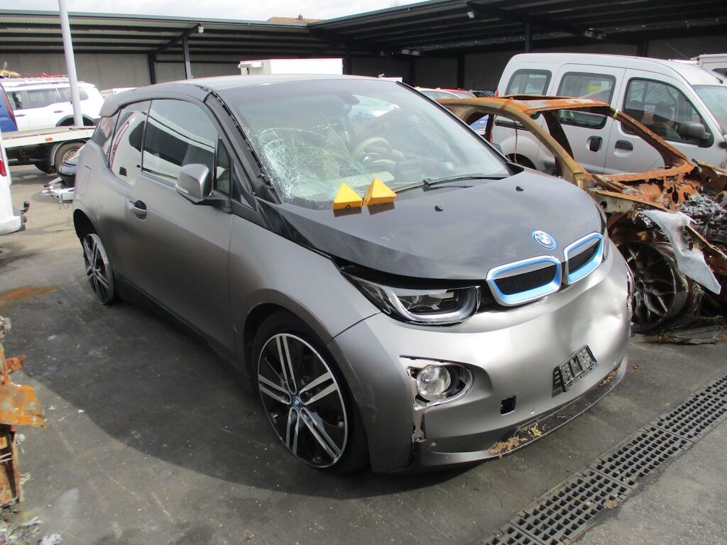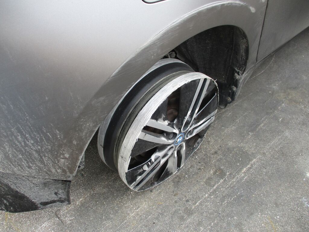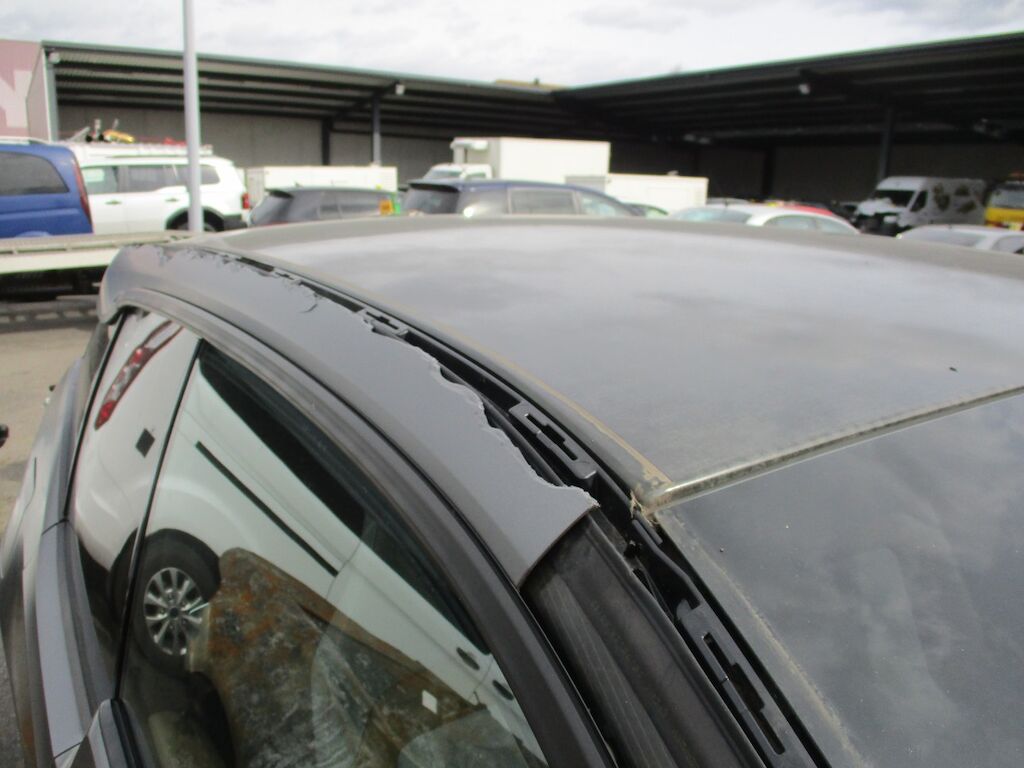 Das Auto weist Schäden an der Front und an den Dachrahmen auf Die Frontscheibe ist zertrümmert Die Stossstange ist eingedrückt. Beide rechten Räder sind zerstört. Die Türe und die Seitenwand HR sind angeschürft.