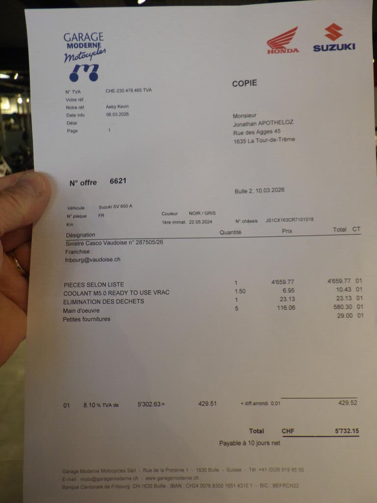 Costi riparazione 5’732.00 CHF