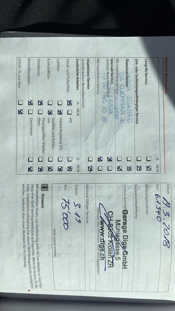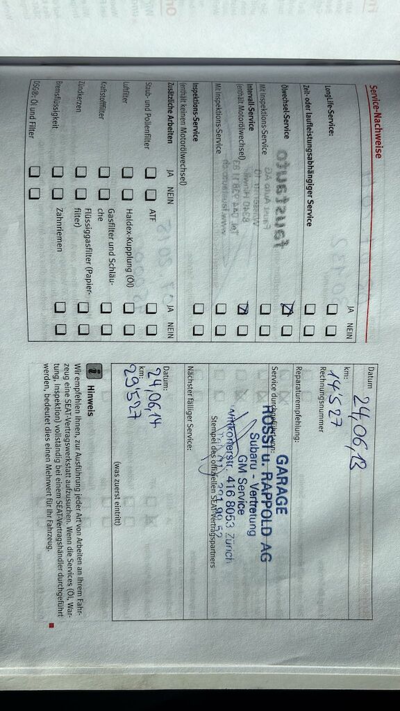 | Costi riparazione | 0.00 CHF | |