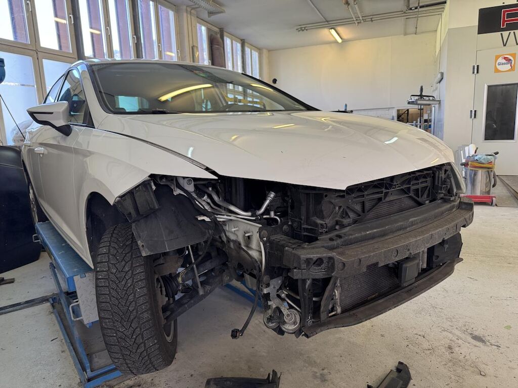Dabei wurde der Kotflügel, die Motorhaube, das Schlossblech deformiert sowie die Stossfängerabdeckung, der Scheinwerfer, das Kühlergitter, beide A-Säulen, Kotflügel links sowie weitere Anbauteile beschädigt.