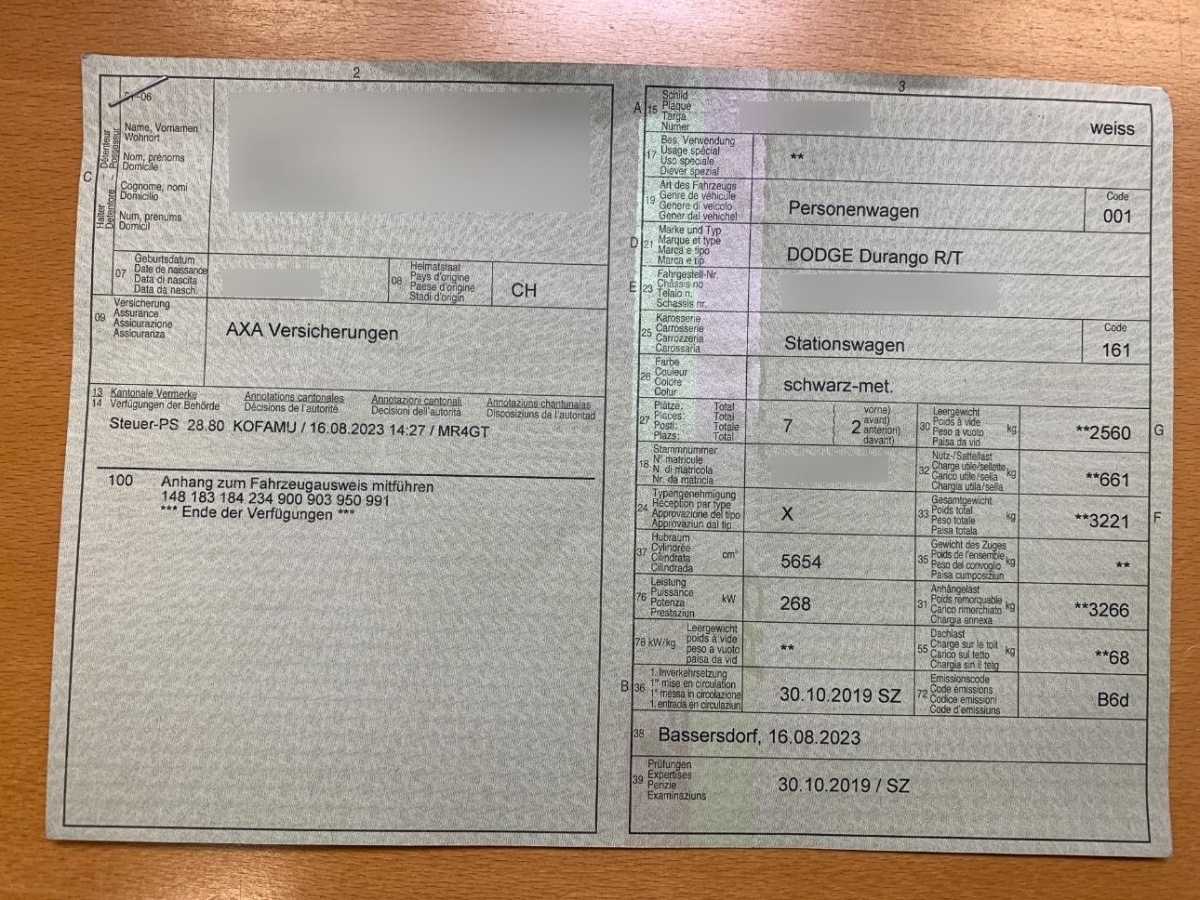 Fahrzeugausweis Vorhanden