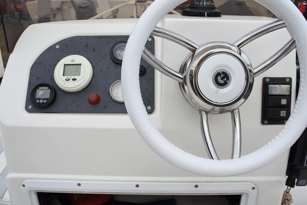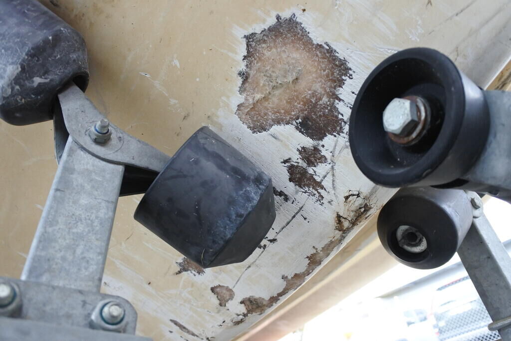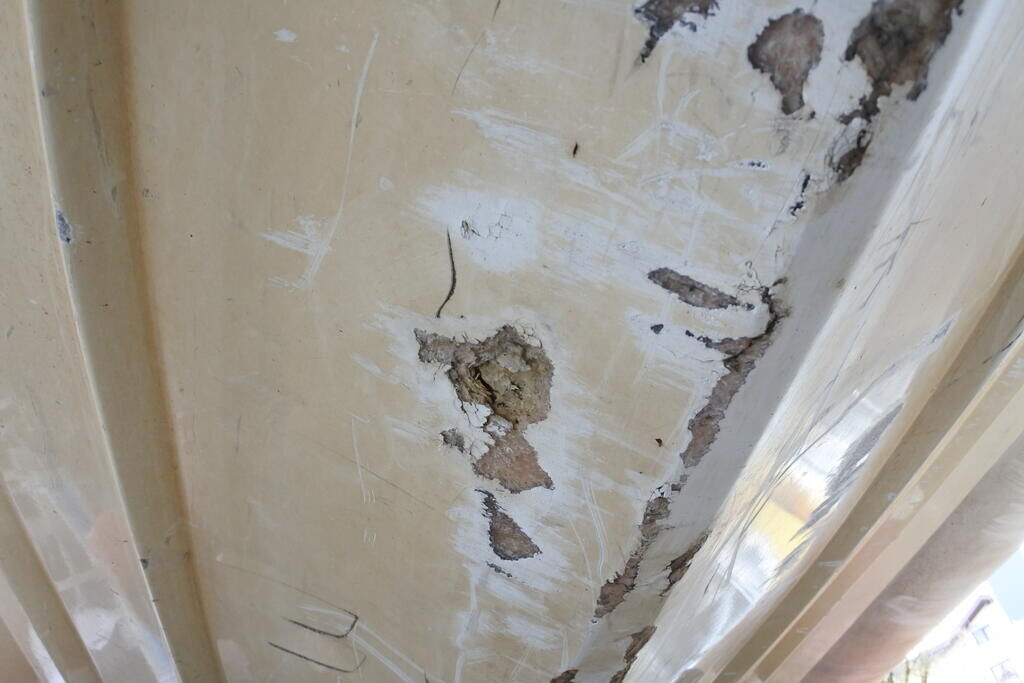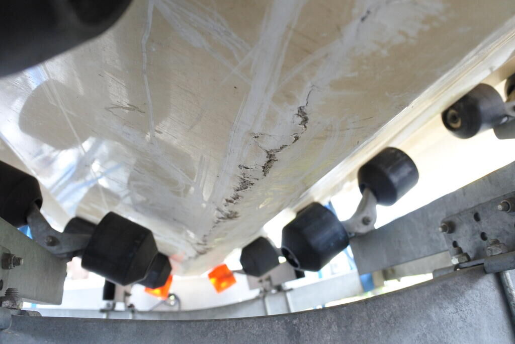 Der Rumpf ist an verschieden Stellen beschädigt und undicht. Der Kiehl ist auf der hinteren Hälfte mit einem durchgehenden Riss versehen. Der Motor läuft nicht und die Finne ist abgebrochen. Die Kombiinstrumente sind beschädigt.