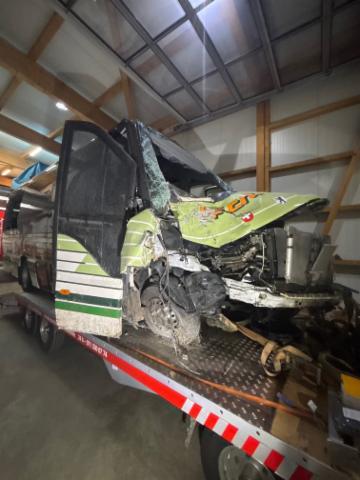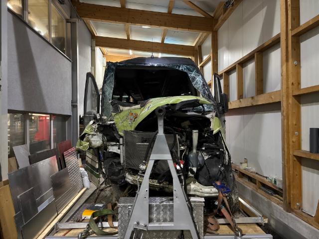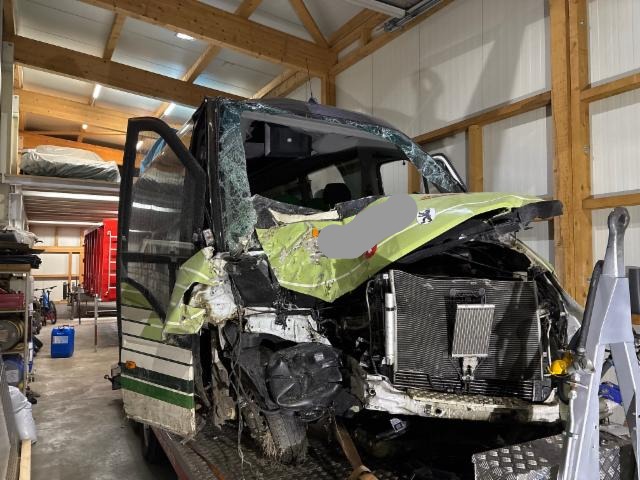 Links Anstoss links im Bereich der C-Säule. Rechts Front Heck Rahmen Motor Achse Innenraum Glas Dach Unterboden |
