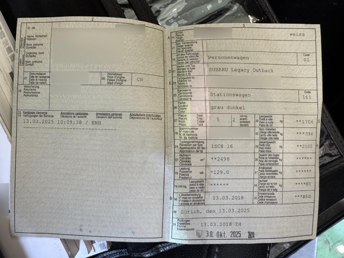 | Fahrzeugausweis | Vorhanden |