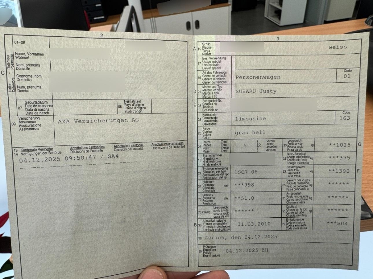 | Fahrzeugausweis | Vorhanden |