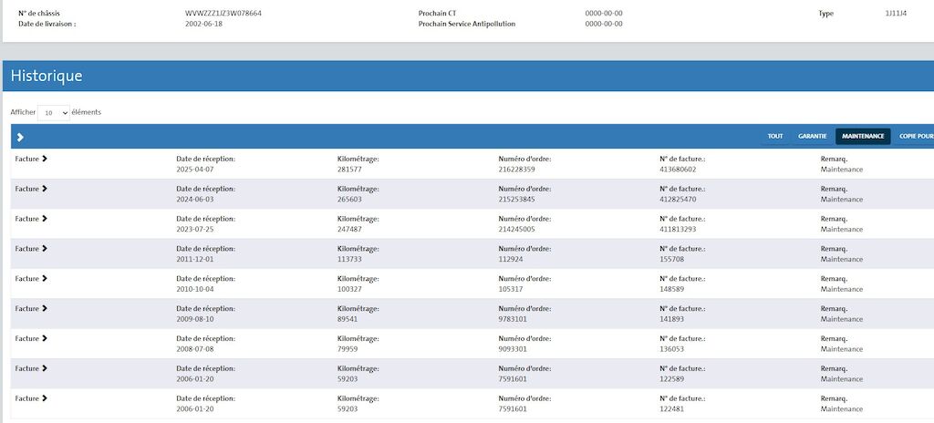 Numero telaio WVWZZZ1JZ3W078664
