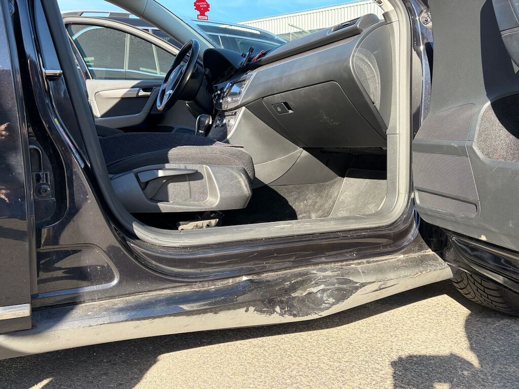 Kollisionsschaden Seite rechts, mit Beschädigung der Türe, der Seitenschwelle, sowie diverser Anbauteile.