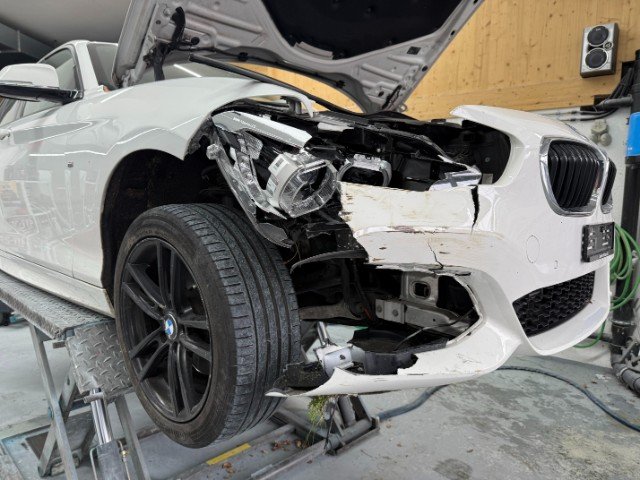 | Beschädigungen | Rechts Rechte Seite beschädigt. Front Front eingedrückt. Front rechts eingedrückt. Achse Vorderachse ist beschädigt. Aufhängungsteile vorne rechts beschädigt. Risiko Vorderachse. Risiko Lenkung. Elektrik Risiko Steuergeräte. Kabelstränge verbrannt, beschädigt, abgerissen. Risiko Scheinwerfer. Sonstige Schäden Div.Carrosserie Teile sind leicht beschädigt. Weitere Beschädigungen |