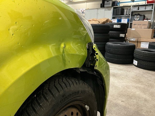 Radhaus vorne rechts eingedrückt / gestaucht.