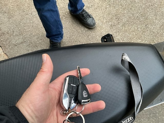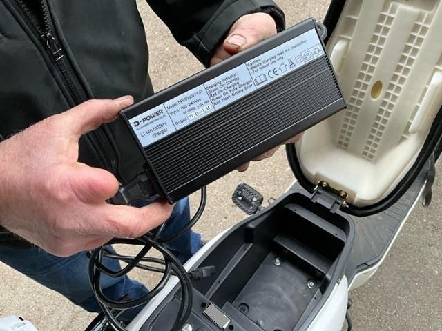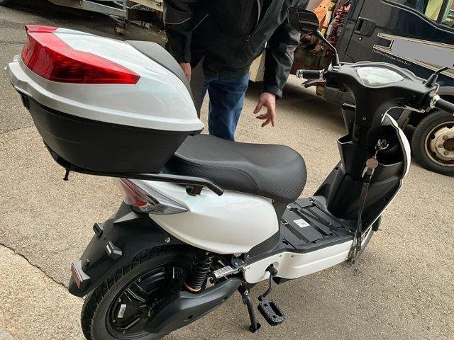 Elektroroller Marke unbekannt mit Tretvorrichtung Lithium – ion Batterie 105 km SCC