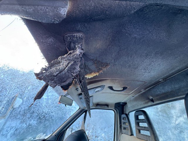 Fahrzeug weist im Innenraum Brandspuren auf.