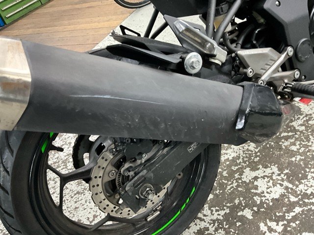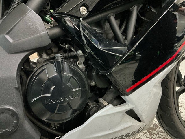 | Beschädigungen | Links Linke Seite beschädigt. Verschalung oben links gebrochen. Rechts Rechte Seite beschädigt. Verschalung oben rechts gebrochen. Verschalung unten rechts gebrochen. Front Gabel Risiko. Lenker verbogen. Sonstige Schäden Div. Teile sind leicht beschädigt. |