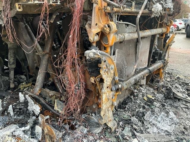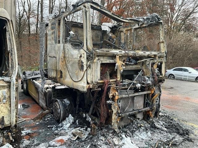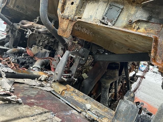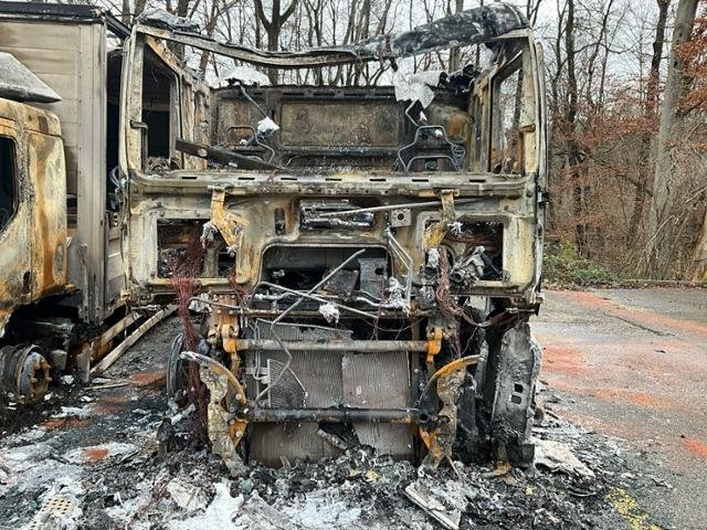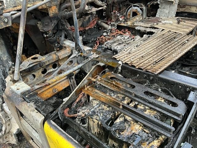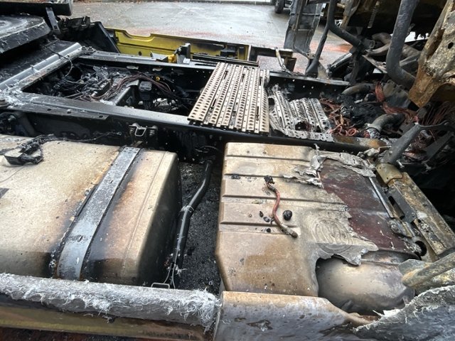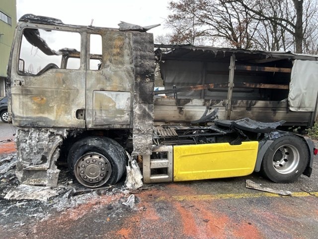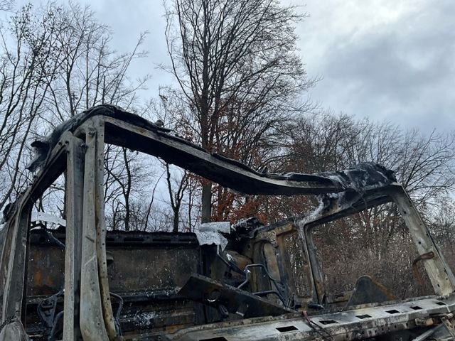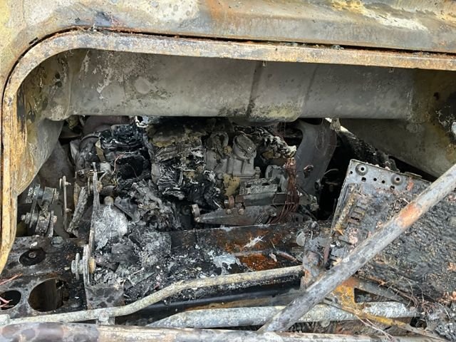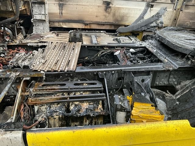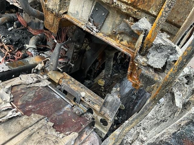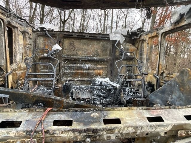 Fahrzeug weist im Innenraum Brandspuren auf.