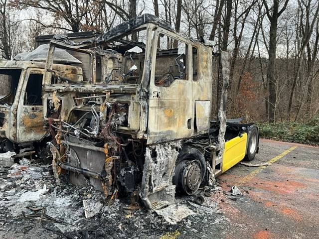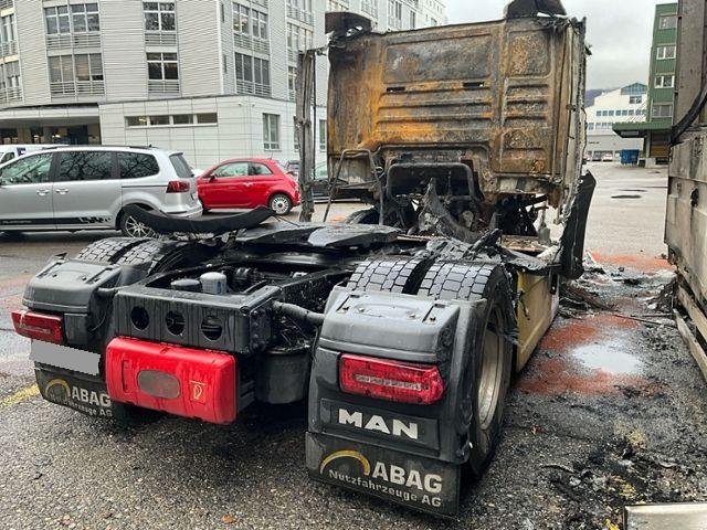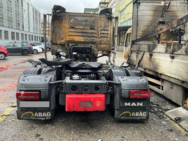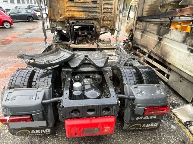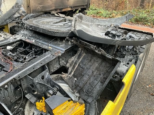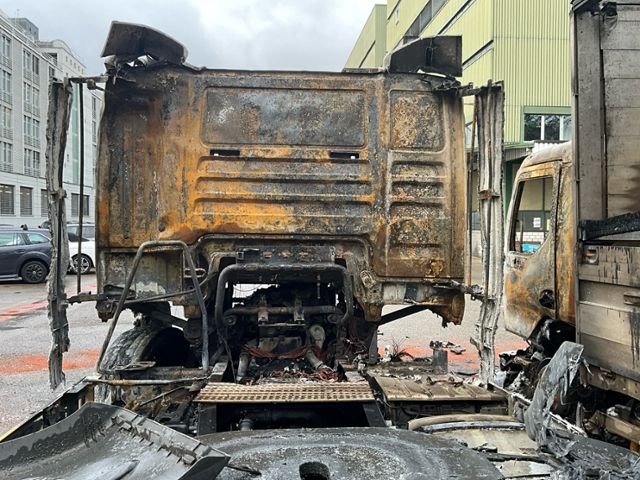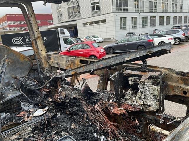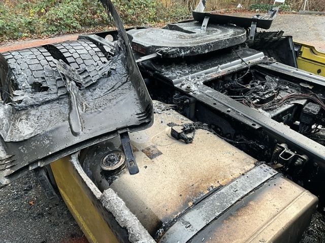 Fahrzeug weist äusserlich Brandspuren auf.