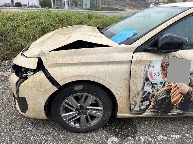 | Beschädigungen | Front Fussgängerschutz ausgelöst. Front eingedrückt. Front links eingedrückt. Front rechts eingedrückt. Frontblech/Maskenblech eingedrückt. Radhaus vorne rechts eingedrückt / gestaucht. Radhaus vorne links eingedrückt / gestaucht. Längsträger vorne links gestaucht. Motor Alle Kühler vorne sind eingedrückt. Elektrik Risiko Steuergeräte. Risiko Scheinwerfer. Glas Windschutzscheibe ist gerissen. |