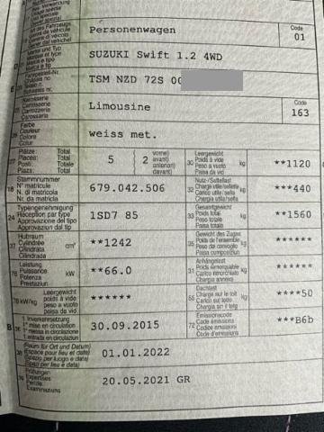 | Beschädigungen | Links Linke Seite beschädigt. Front Front eingedrückt. Front links eingedrückt. Heck Heck links eingedrückt. Seitenwand hinten links eingedrückt/ausgestaucht. Heckblech eingedrückt. Kofferboden eingedrückt. Sonstige Schäden Div.Carrosserie Teile sind leicht beschädigt. Div. Roststellen am Fahrzeug. Lackierung matt (stumpf, beschädigt). |