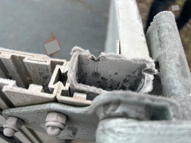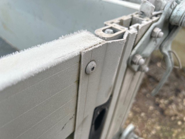 Gitter beschädigt, Aufbau verschoben, Beschläge wie Eckrungen deformiert